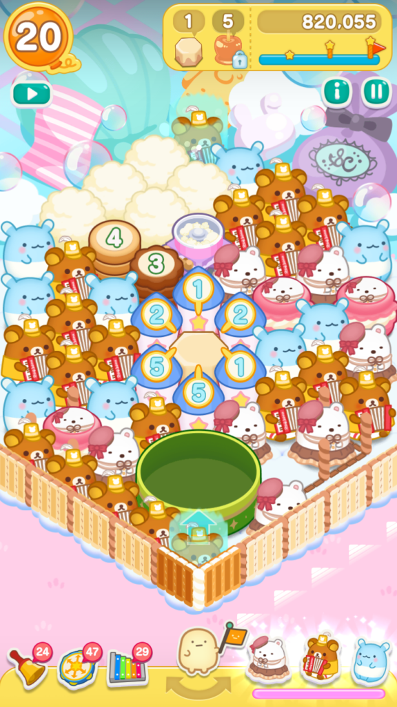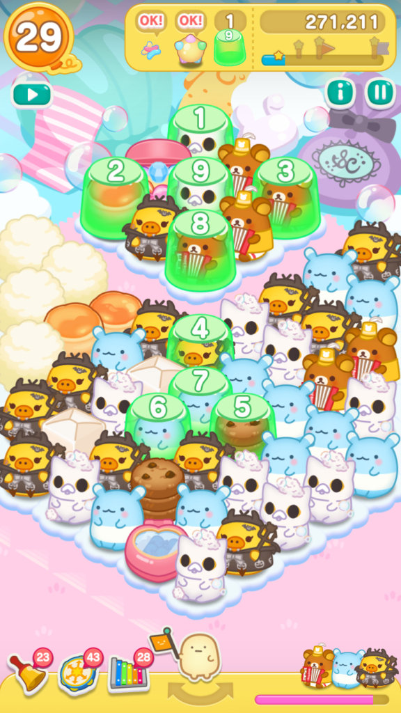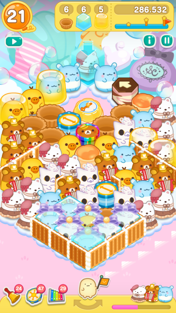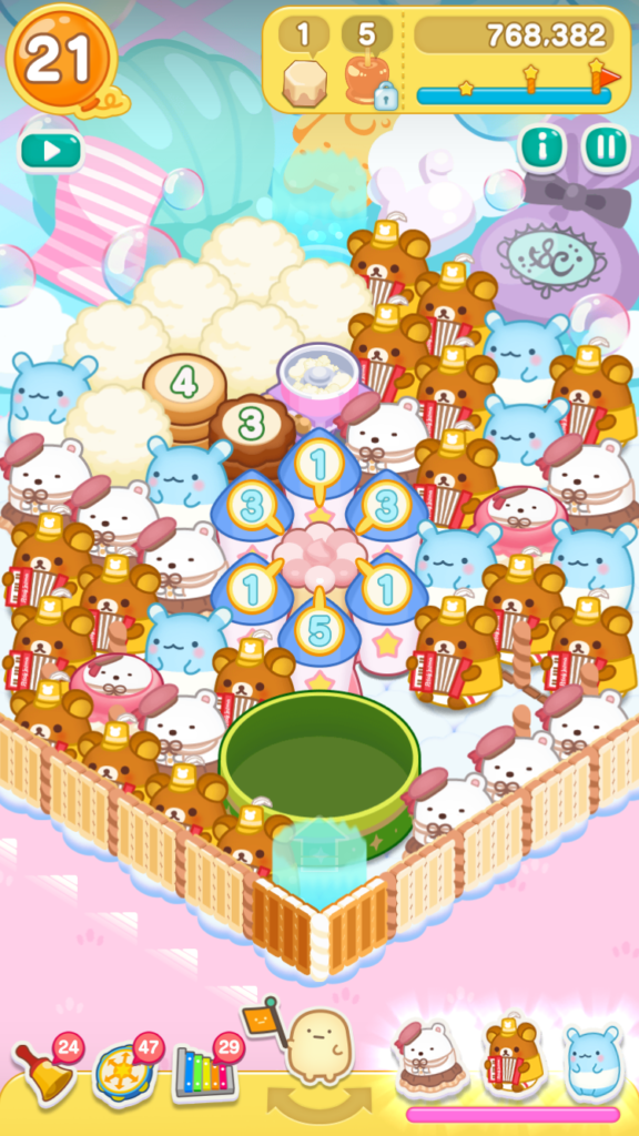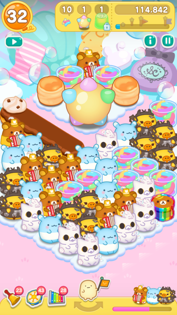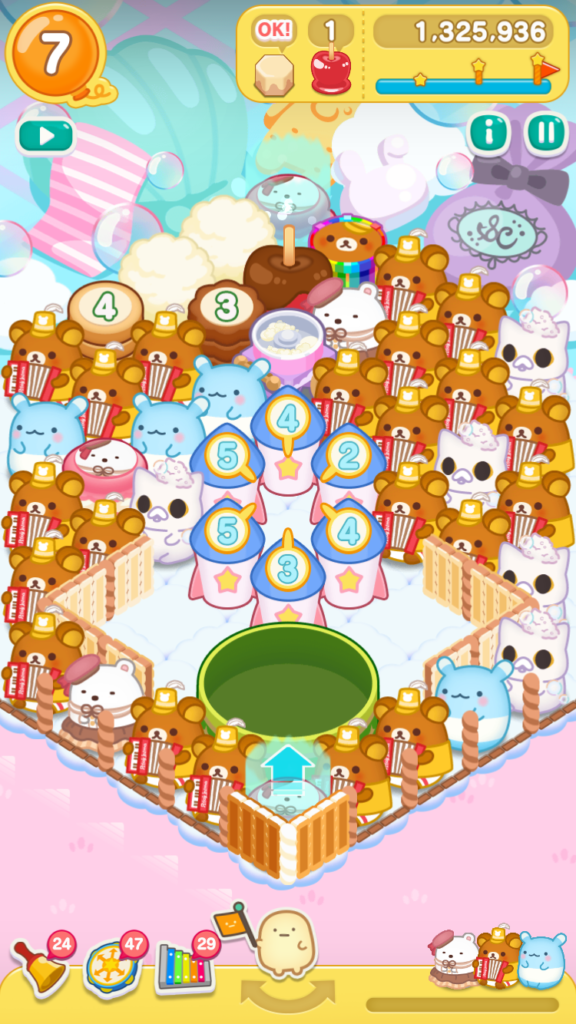 リラックマがとなりにいたので、レインボードラムをタップしてスイーツバルーンを小さくすることができました。