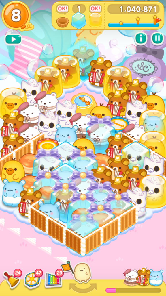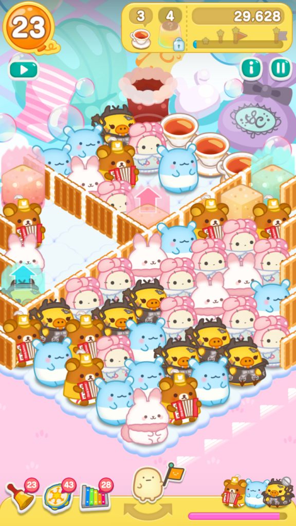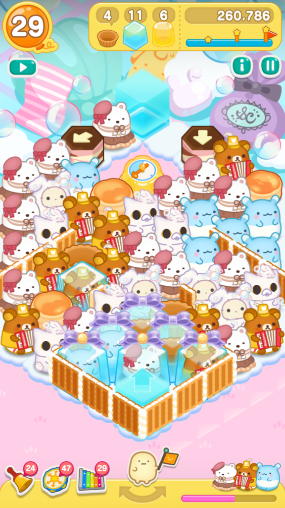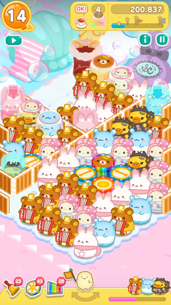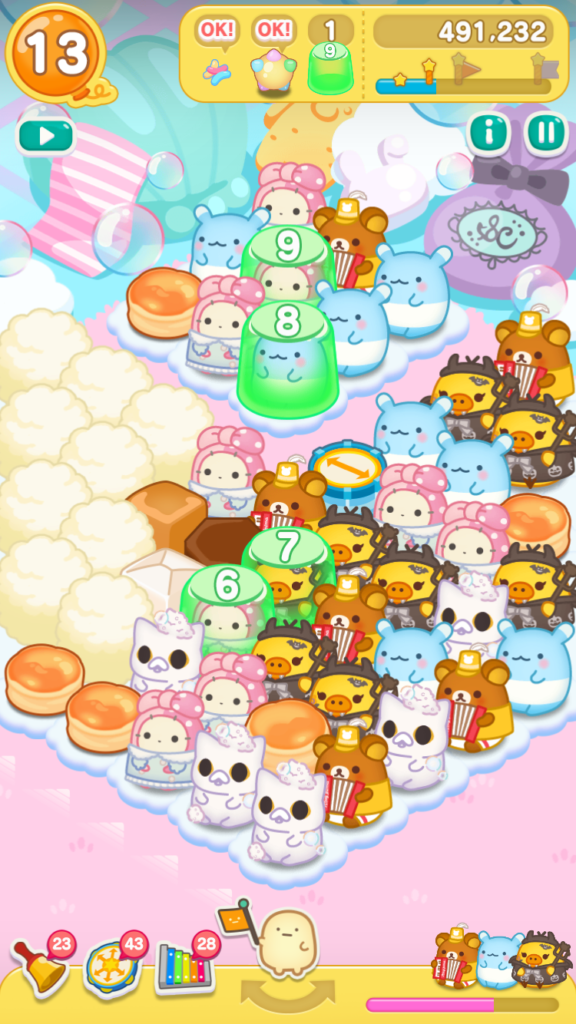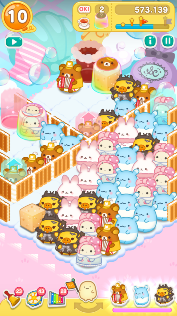 リラックマがとなりにいたので、レインボードラムをタップしてスイーツバルーンを小さくすることができました。